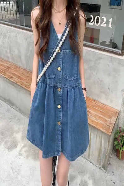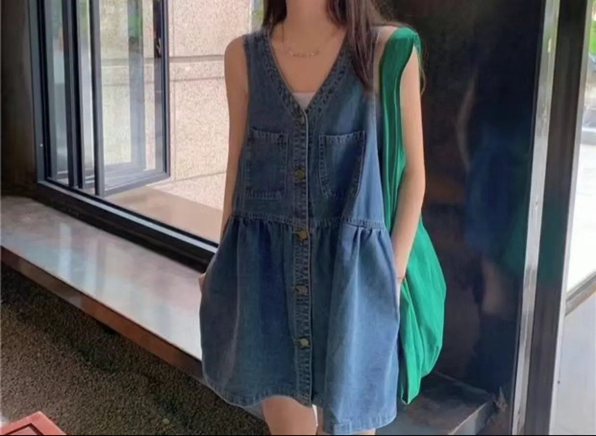 ✨詳細介紹✨🌸牛仔排釦無袖洋裝🌸 💡下單前請注意 💡 1. 本賣場商品皆由韓國東大門直送,商品皆需預購 2. 追加時間約7-21個工作天(不含假日) 3. 商品需空運回台,無法等待請勿下單 4. 韓國商品會有照片與實際商品色差及尺寸問題 5. 預購追加商品可能會遇到斷貨風險 以上無法接受者請勿下單
