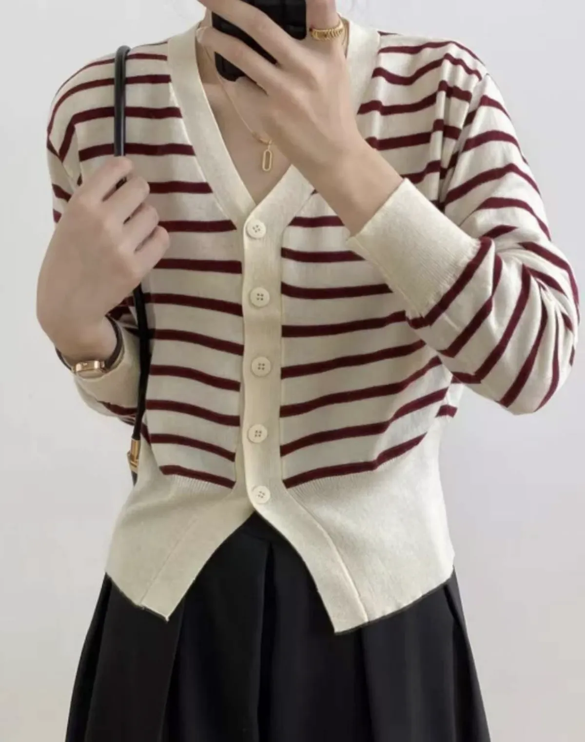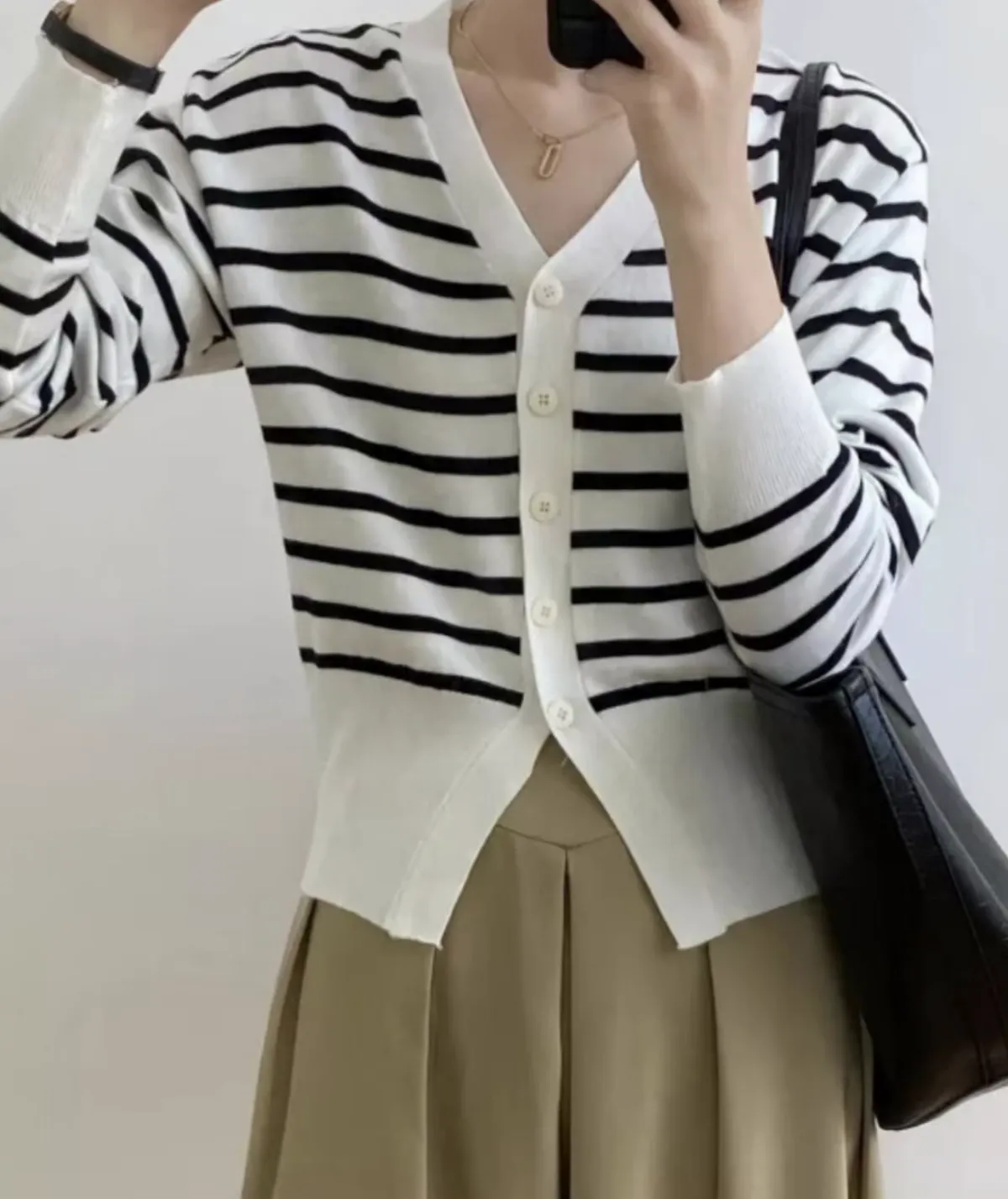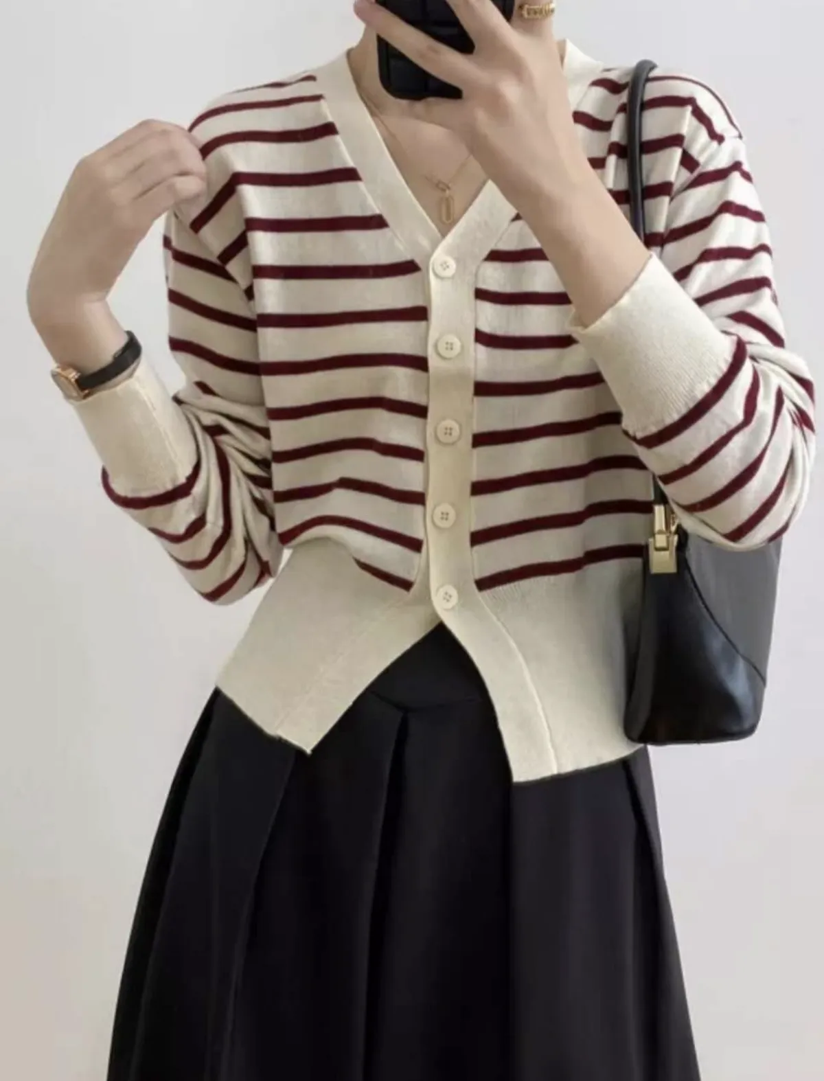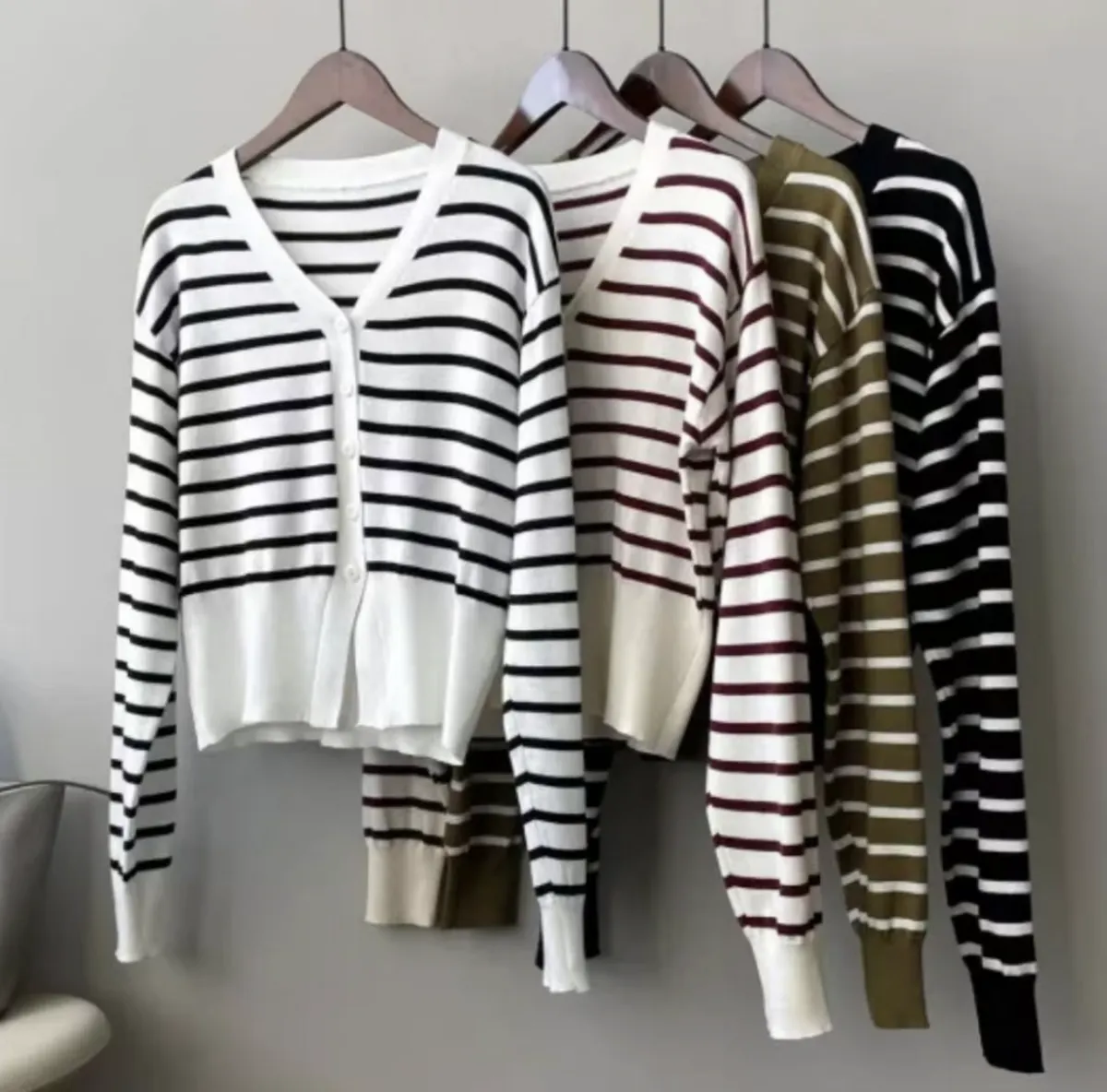 ✨詳細介紹✨🌸條紋薄款針織短版外套🌸 💡下單前請注意 💡 1. 本賣場商品皆由韓國東大門直送,商品皆需預購 2. 追加時間約7-21個工作天(不含假日) 3. 商品需空運回台,無法等待請勿下單 4. 韓國商品會有照片與實際商品色差及尺寸問題 5. 預購追加商品可能會遇到斷貨風險 以上無法接受者請勿下單