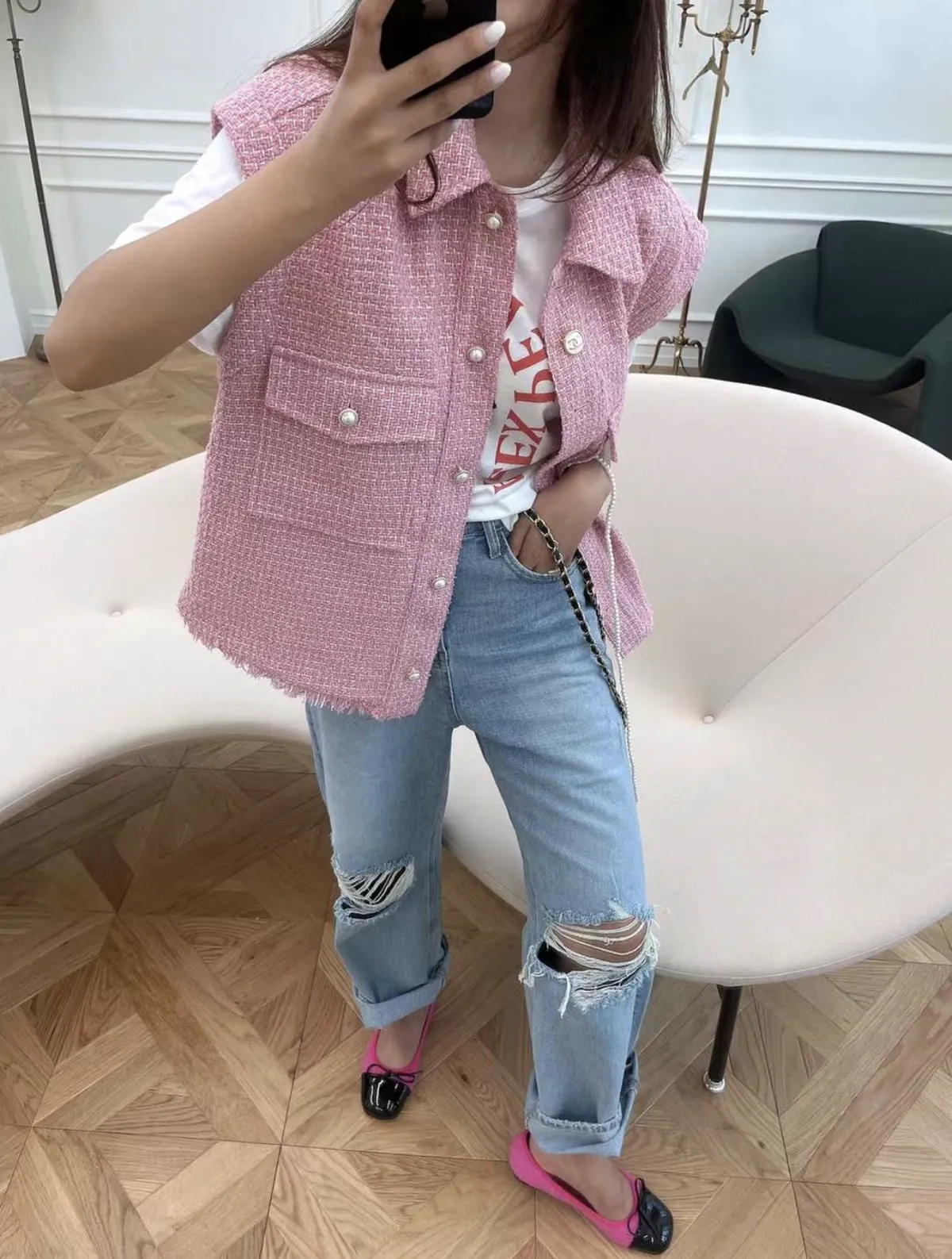 ✨詳細介紹✨🌸小香款挺版背心🌸 💡下單前請注意 💡 1. 本賣場商品皆由韓國東大門直送,商品皆需預購 2. 追加時間約7-21個工作天(不含假日) 3. 商品需空運回台,無法等待請勿下單 4. 韓國商品會有照片與實際商品色差及尺寸問題 5. 預購追加商品可能會遇到斷貨風險 以上無法接受者請勿下單